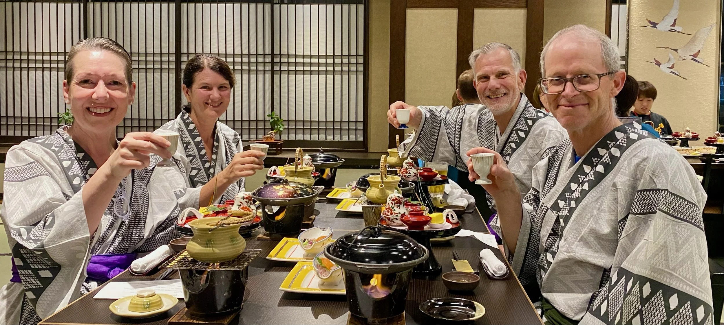All this could be washed down with a refreshing Japanese beer, sake or wine. To complete the dining experience, guesthouses provided complimentary yukata gowns so that we all felt rather resplendent at meal times.